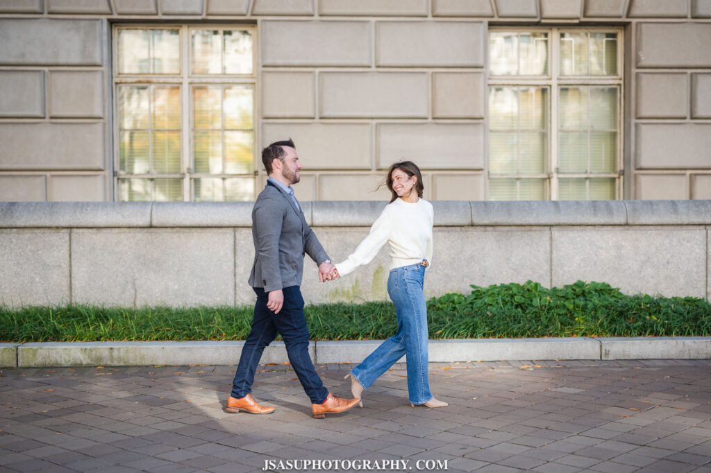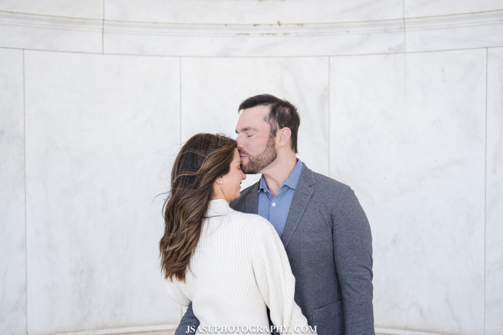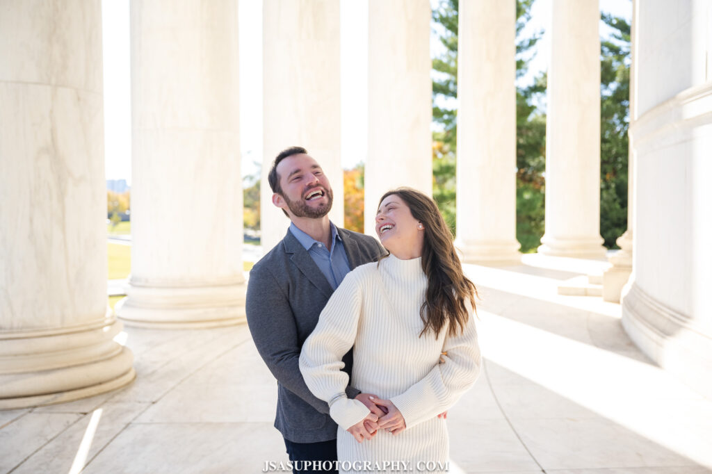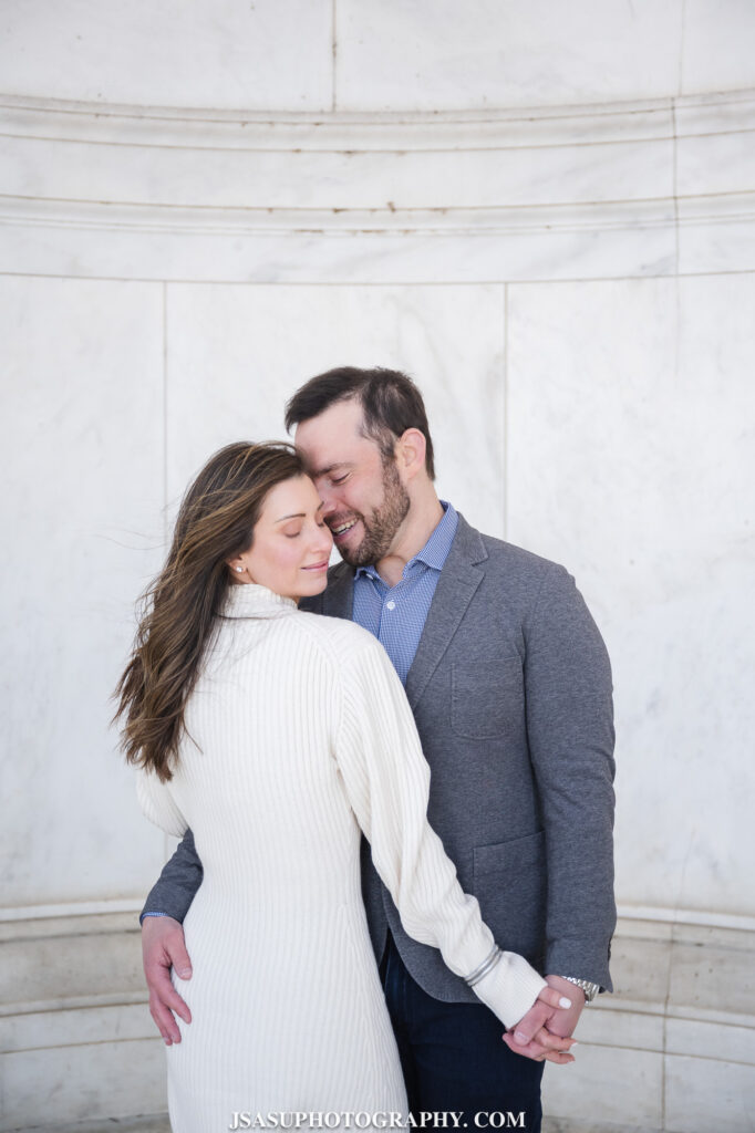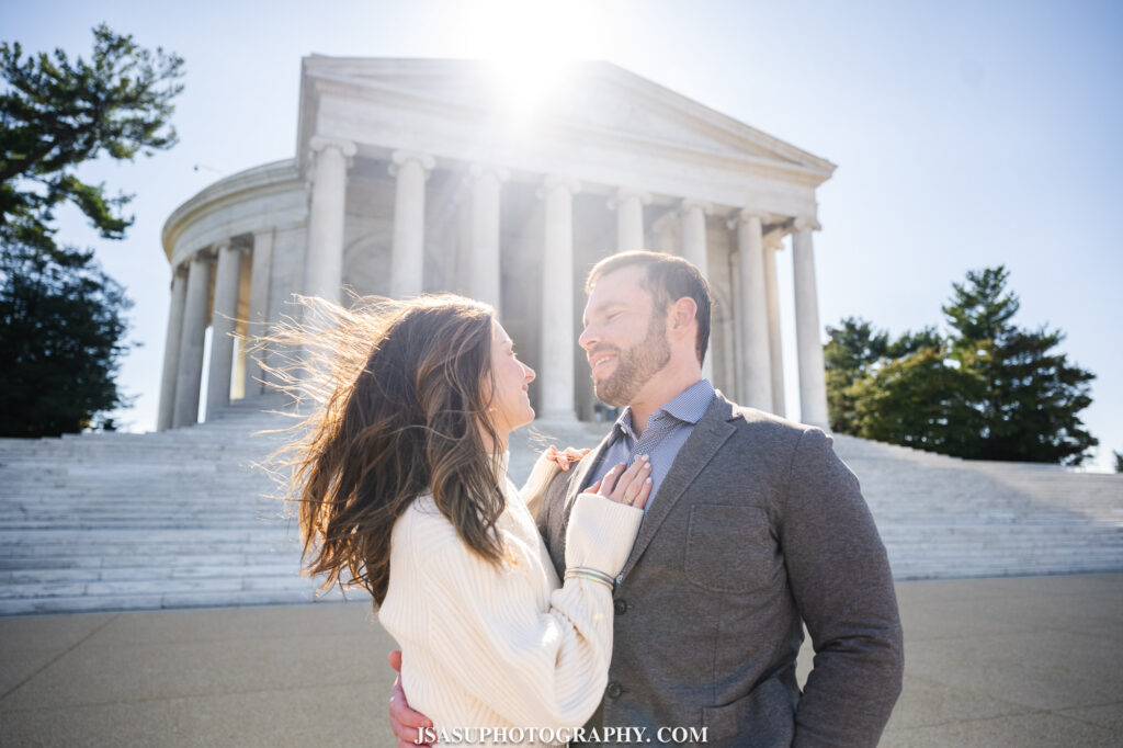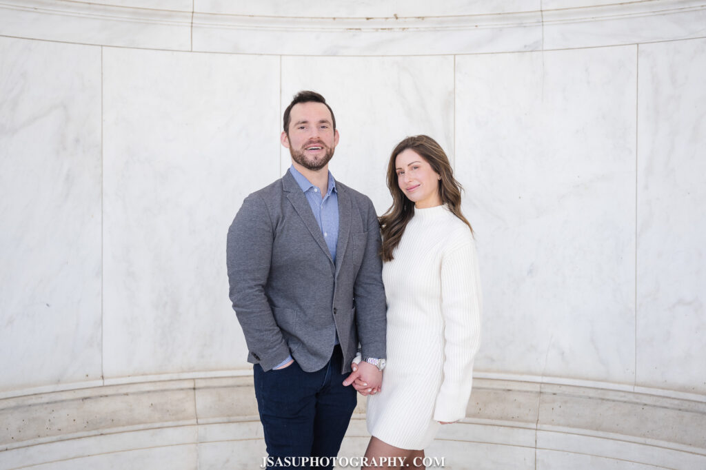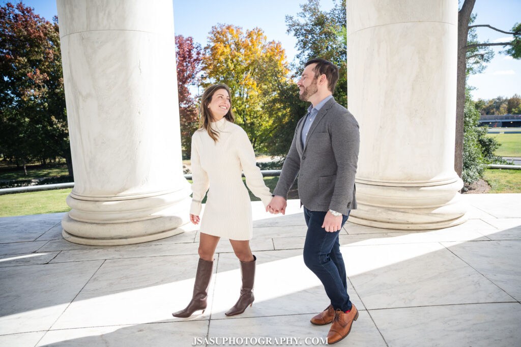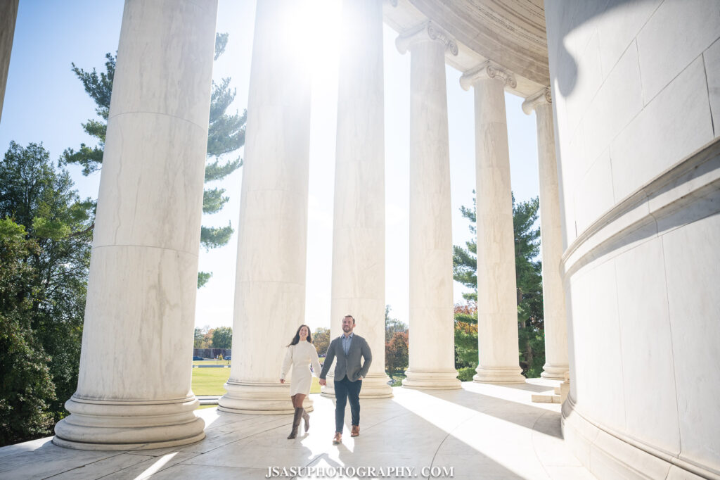 Jordan and Alona’s Thomas Jefferson Memorial Engagement Session was everything she wanted it to be. Classic and sunny with the wind blowing slightly in her hair. She knew she wanted something in Washington, DC and the Jefferson Memorial was her ideal spot. Jordan’s idea of a his ideal engagement session was a session at home with their corgi.